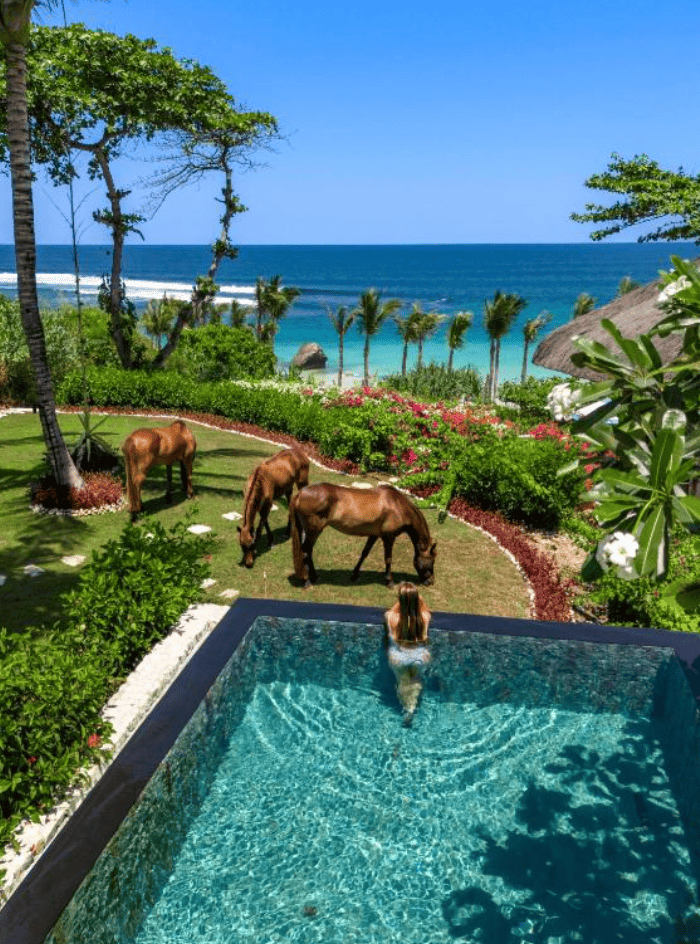 Nihi Sumba Resort 拿過無數次世界前十大最佳飯店及2025 年的米其林飯店金鑰三星殊榮、是好萊塢名人蜜月首選的五星頂級渡假酒店 ,位於松巴島的西側,緊鄰 Nihiwatu beach沙灘,Nihi Sumba Resort 的建築設計充分尊重當地文化,典型茅草建築、標誌性尖頂屋頂和開放式起居空間,度假村整體設計與島上原有風景完美融合。在這裡可以享受熱帶森林、沙灘騎馬、山谷瀑布、海底潛水與島上原生景觀。