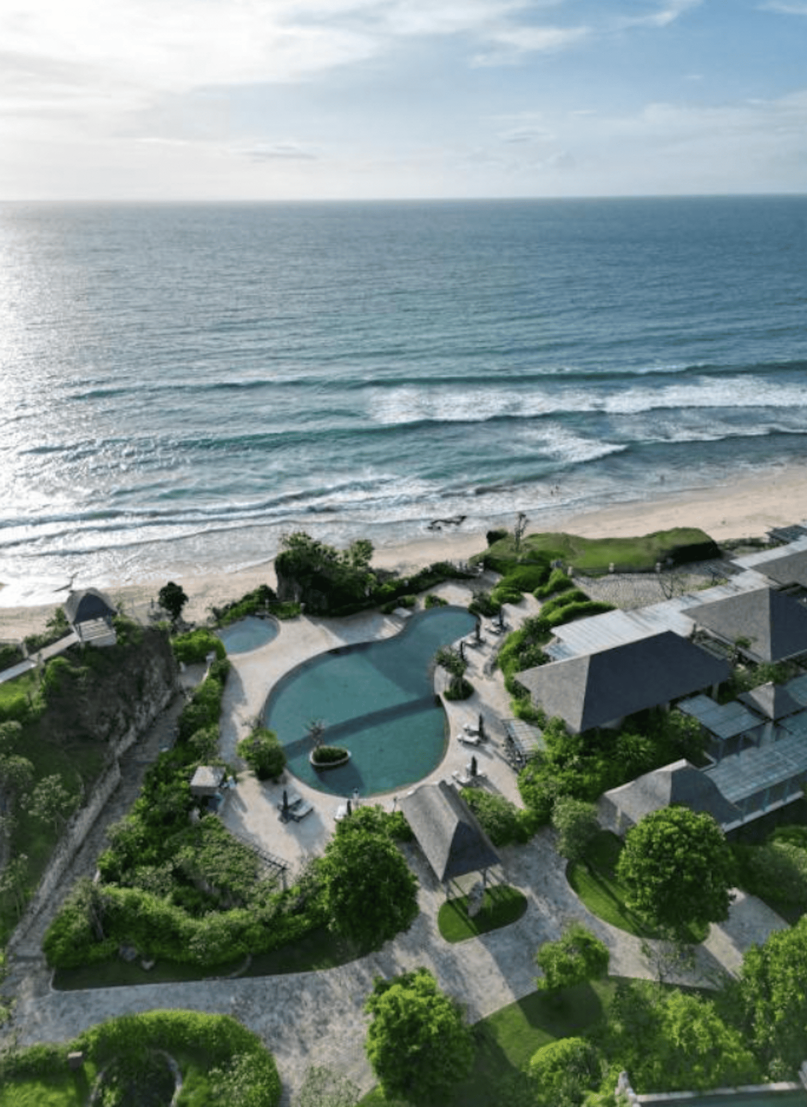 Jumeirah Bali Resort 為世界知名的五星頂級奢華度假酒店品牌 ,擁有杜拜知名帆船飯店的杜拜控股集團 (Dubai Holding)旗下的全球Jumeirah Group,2022年在峇里島西南海岸的烏魯瓦圖 Uluwatu 開幕於印尼的第一間此品牌酒店。 這間Jumeirah Bali Resort 是在峇里島的第一間 ,提供優質服務與高品質住宿及美麗的海景。酒店設計靈感源自印度與爪哇文化,再結合西班牙式的現代度假風格,呈現低調、簡單大器、優雅又奢華。整個渡假飯店為一個小型山坡,眺望印度洋,末段可以直接走向海灘。山坡設計成蜿蜒的道路,與遠方的海岸風情相呼應的是宛如歐洲花園般的綠意盎然。